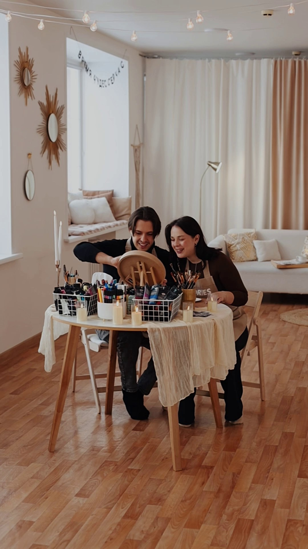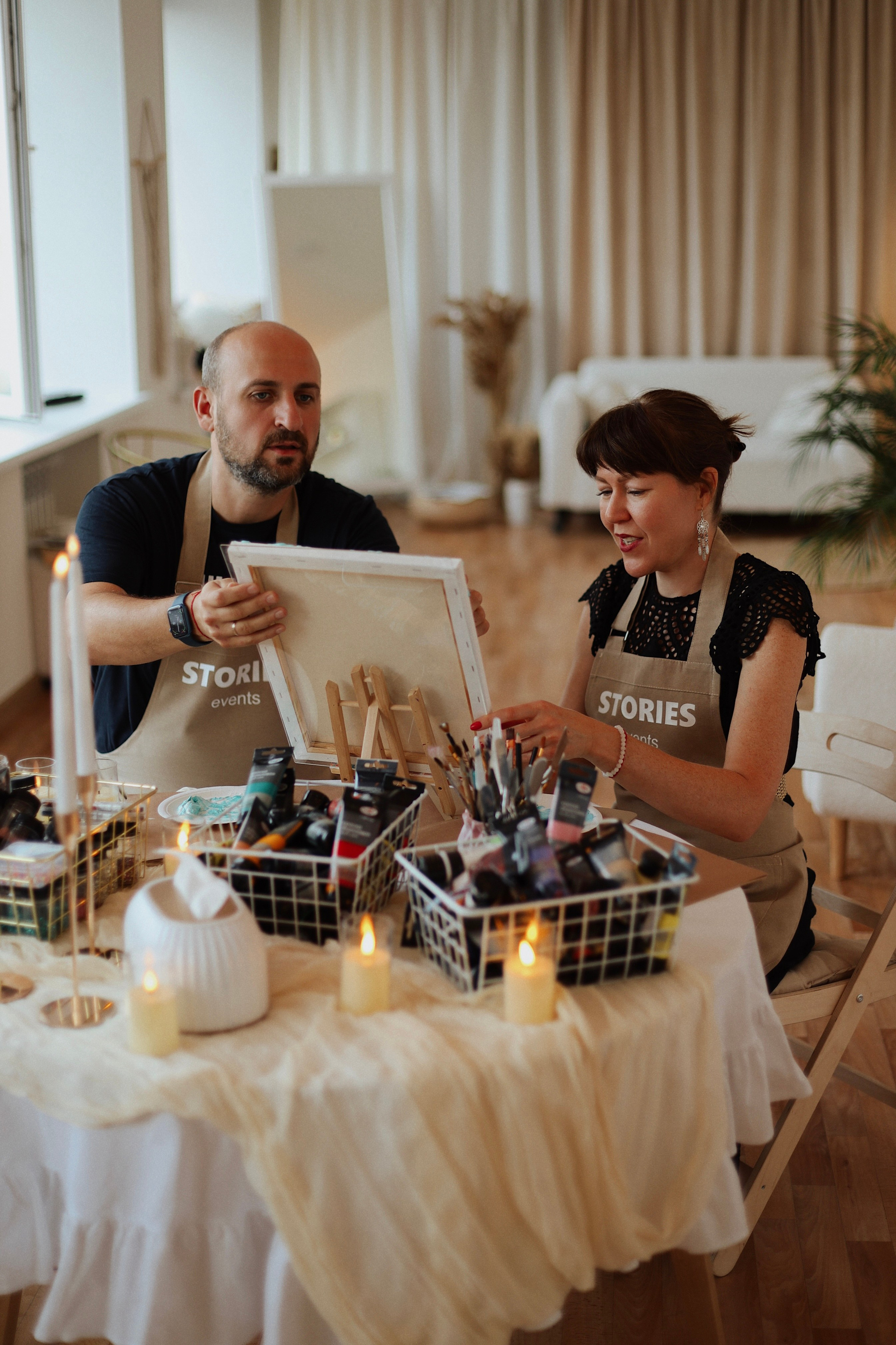 - Также в промежутках, когда вы рисуете или декорируете, ведущая будет выходить из-за зала, чтобы вы побыли наедине друг с другом