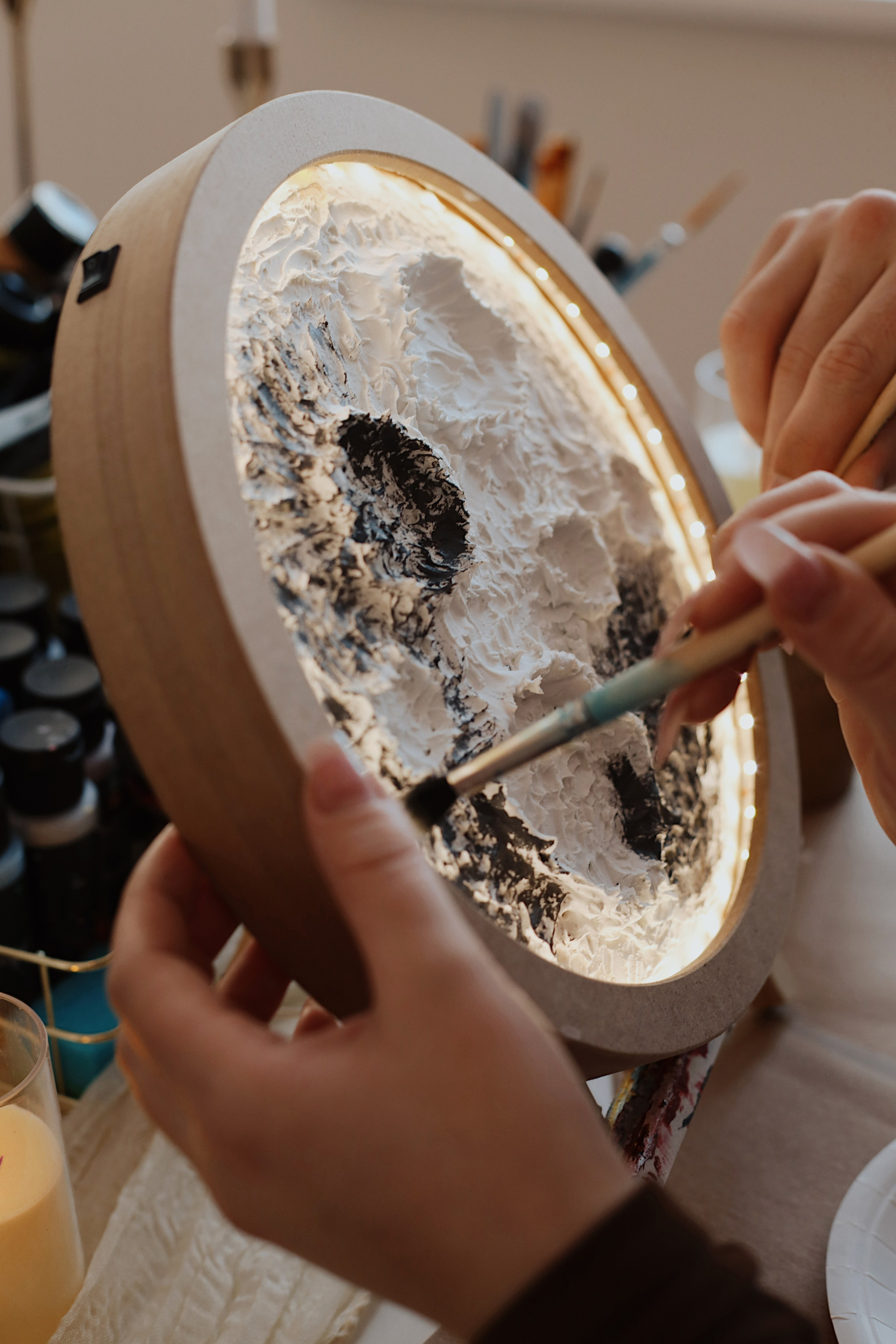 Ночник-луна с подсветкой текстурной пастой