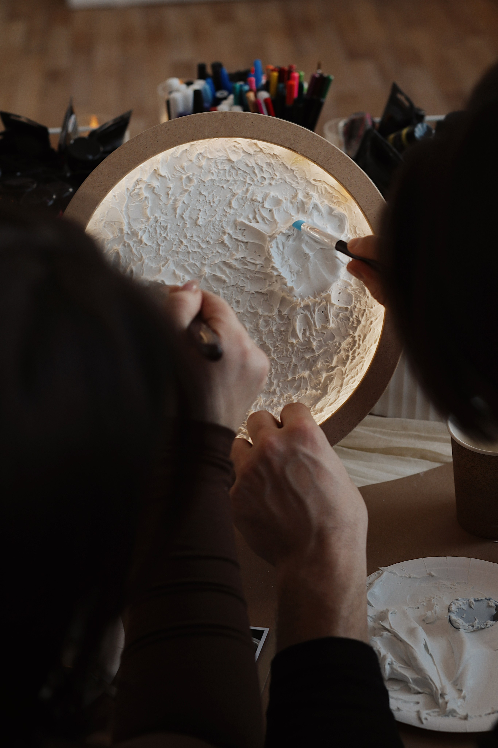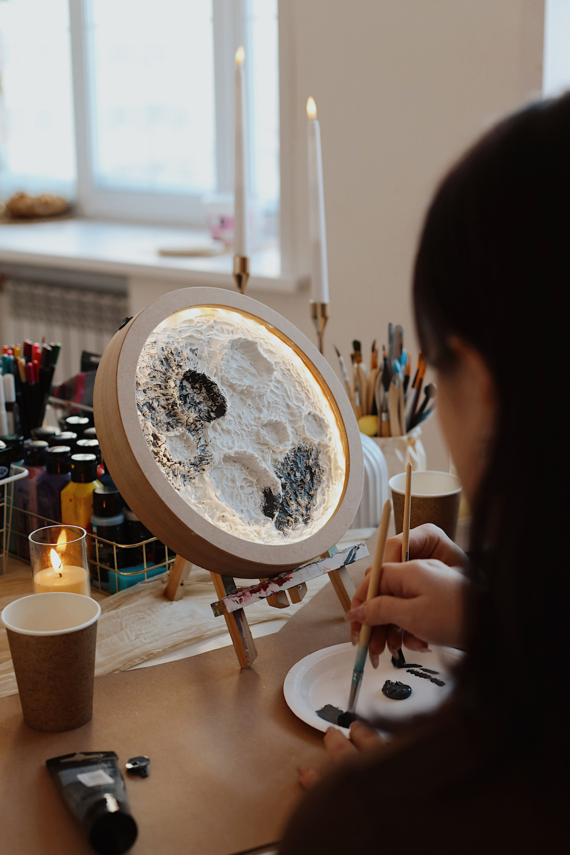 На мастер-классе вы создадите свой собственный спутник — Луну — объёмную, рельефную, словно хранящую следы настоящих кратеров и лунных дорог.